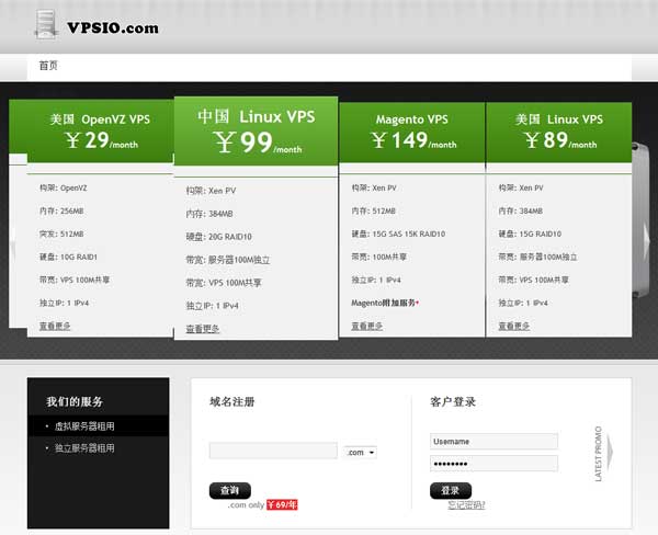 VPSIO 是国人VPS主机商,采用Xen架构,数据中心在圣何塞(国内速度优秀)。2012年六一活动发布6折优惠码,购买美国linux384方案 ¥53元/月。