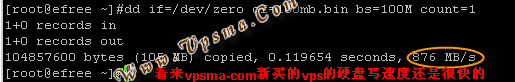 此功能也可以顺便检测下你买的vps的硬盘的写速度,看下vpsma新买的数据吧: